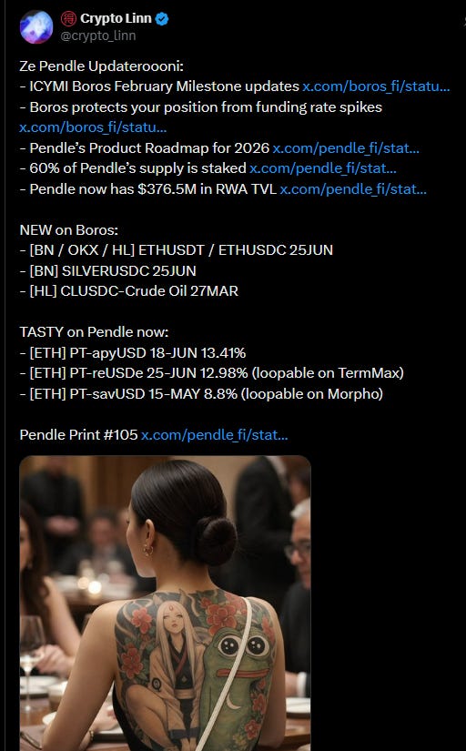 Linn is partnered with: Theo, Odyssey, Maple, Mantle, KYAN and PENDLE. Partnership or not, my views are honest and transparent.