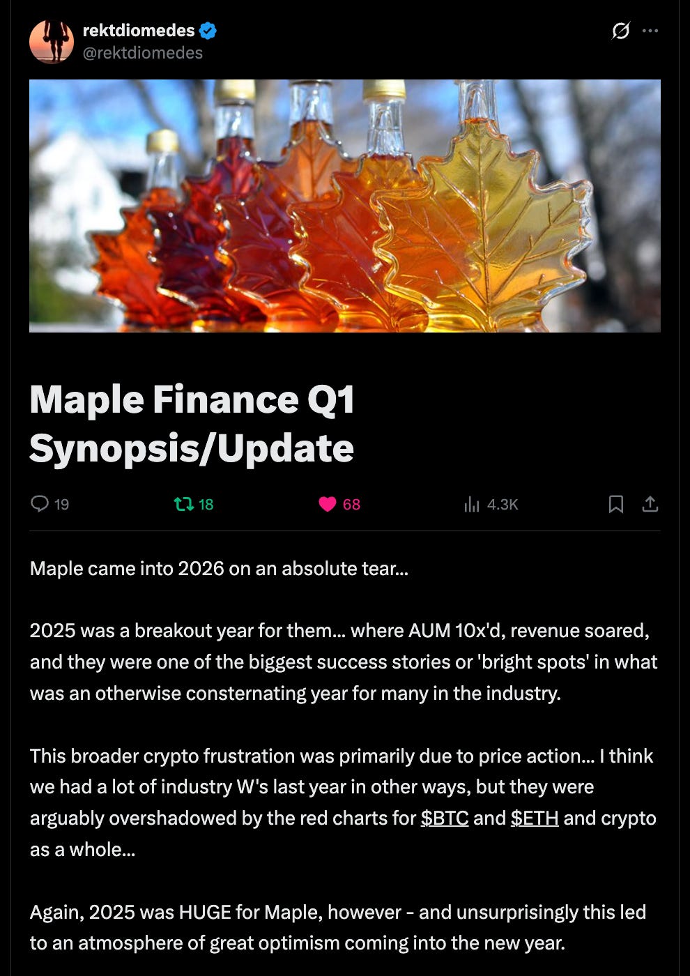 Linn is partnered with: Theo, Maple, Mantle, KYAN and PENDLE. Partnership or not, my views are honest and transparent.